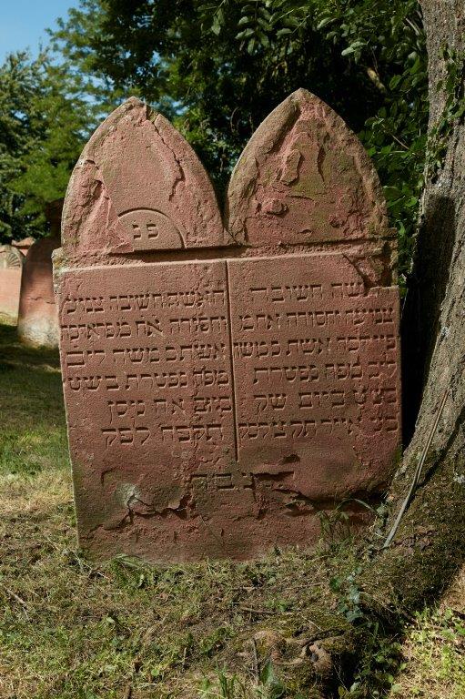 Doppelgrabstein der 1. und der 2. Ehefrau von Moises Wormser aus Ingenheim, die beide im Zeitraum von 2 Jahren jung verstorben sind.
