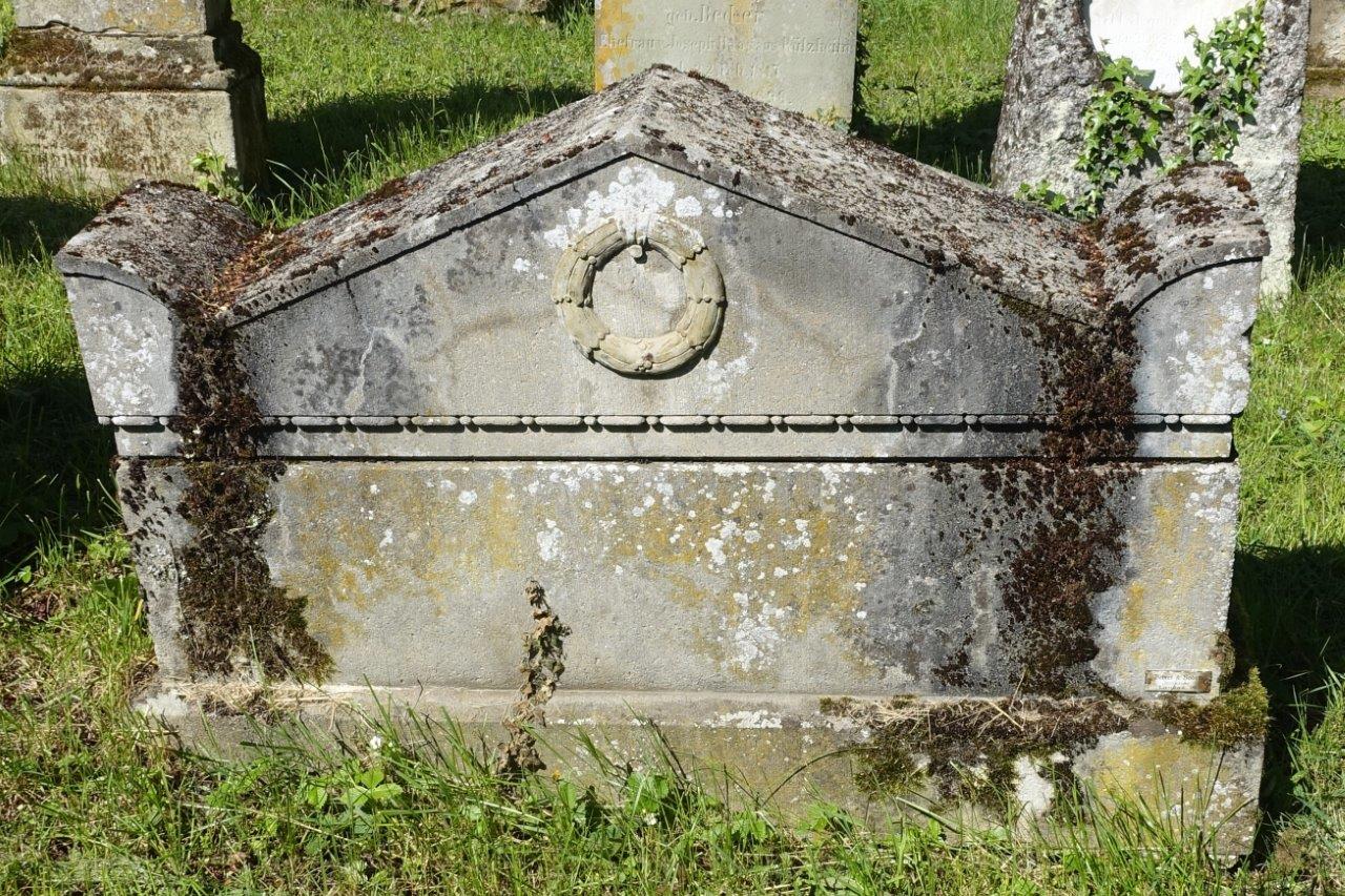Das Mittelteil des Grabsteins wurde in den Jahren 1938 / 39 durch nationalsozialistische Schändung zerstört.