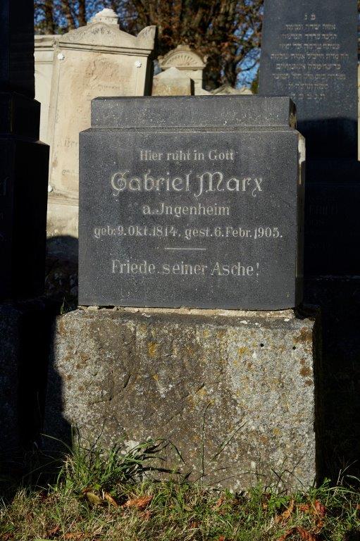 Das Oberteil befindet sich heute 3 20 03. Nach der Schändung des Friedhofes 1939 wurde bei der instandsetzung in den 50er Jahren das Oberteil hier mit einem Betonsockel befestigt. Darum wurde es an dieser Stelle belassen, da sonst größere Schäden wohl nicht zu vermeiden gewesen wären.