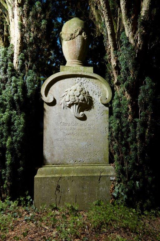 Eine mit einem Kranz umrahmte Urne ziert den oberen Abschluss.