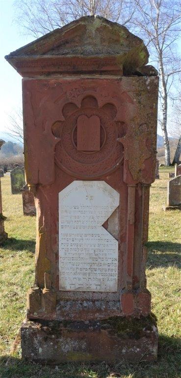 Stil: Ädikulaartige Stele mit doppelten Säulen und Kapitellen auf profiliertem Sockel. Im hufeisenförmigen Bogen befinden sich die Gesetzestafeln. Der verdachte Giebelabschluss enthält das Auge Gottes im Strahlenkranz. Maurischer Stil.