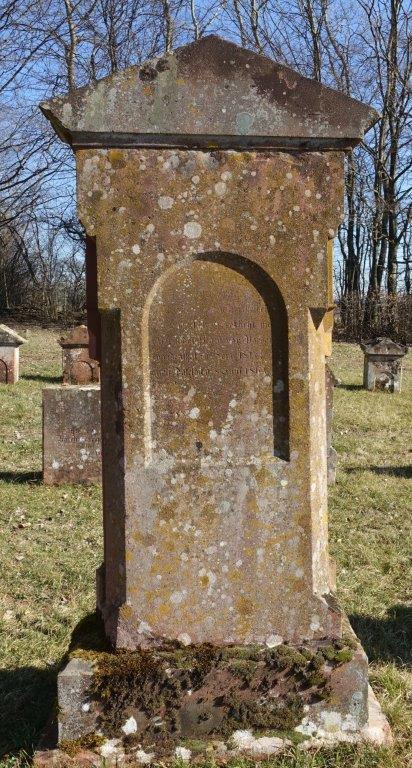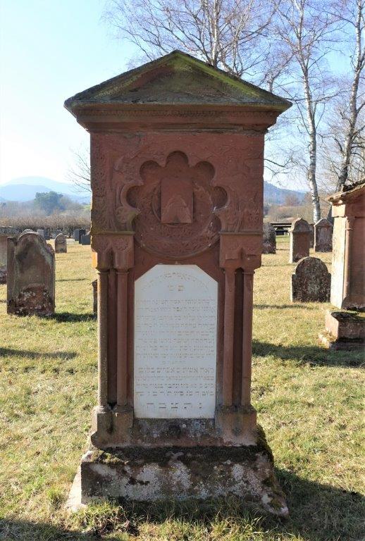 Stil: Ädikulaartige Stele mit doppelten Säulen und Kapitellen auf profiliertem Sockel. In hufeisenförmigen Bogen befinden sich die Gesetzestafeln. Der verdachte Giebelabschluss enthält das Auge Gottes im Strahlenkranz. Maurischer Stil.