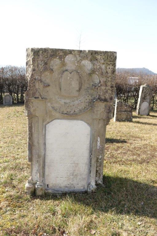 Stil: Ädikulaartige Stele mit Doppelsäulen, Kapitellen, hufeisenförmigen bogen und Gebotstafel, maurischer Stil. Der Abschluss ist nicht mehr vorhanden.