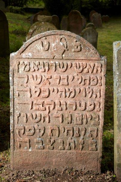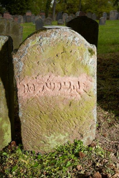 Rechteckige Stele mit leicht eingezogenem Bogenabschluss und Rahmen. Das Schriftfeld durch horizontale Rahmenleiste auf Höhe der Schultern zweigeteilt. Schrift erhaben. Zwischen den beiden Buchstaben der Einleitungsformel reliefierte Levitenkanne.