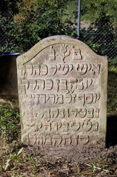 Z. 4: ז"ל, „sein Andenken zum Segen“, bQid 31b: זכרונו לברכה לחיי העולם הבא, „sein Andenken zum Segen, zum Leben in der zukünftigen Welt“. דידז..., etwa: dides…, das Ende des Ortsnamens ist verloren. In Frage kommt Deidesheim (Kreis Bad Dürkheim), wo es seit dem 16. Jahrhundert wieder eine Gemeinde gab. Eine andere Möglichkeit ist Diedesfeld (heute zu Neustadt a.d. Weinstraße). Die Diedesfelder Juden nutzten im 19. Jahrhundert den Essinger und später den Kirrweiler Friedhof; wie viele Familien dort im 18. Jahrhundert lebten, ist nicht bekannt.