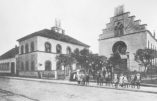 Das Schulhaus, ganz im maurischen Stil der Synagoge mit entsprechenden Hufeisenfenstern ausgestattet, stand unmittelbar neben der Synagoge. Daher war auf der Ostseite im Kellergeschoss eine Mikwe, ein religiöses Bad angegliedert.