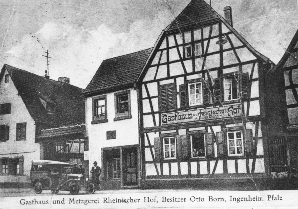 Später - spätestens ab 1905 hieß es hier: "Gasthaus und Metzgerei Rheinischer Hof, Besitzer Otto Braun, Ingenheim". Nun mit der Adresse: Hauptstraße 61.