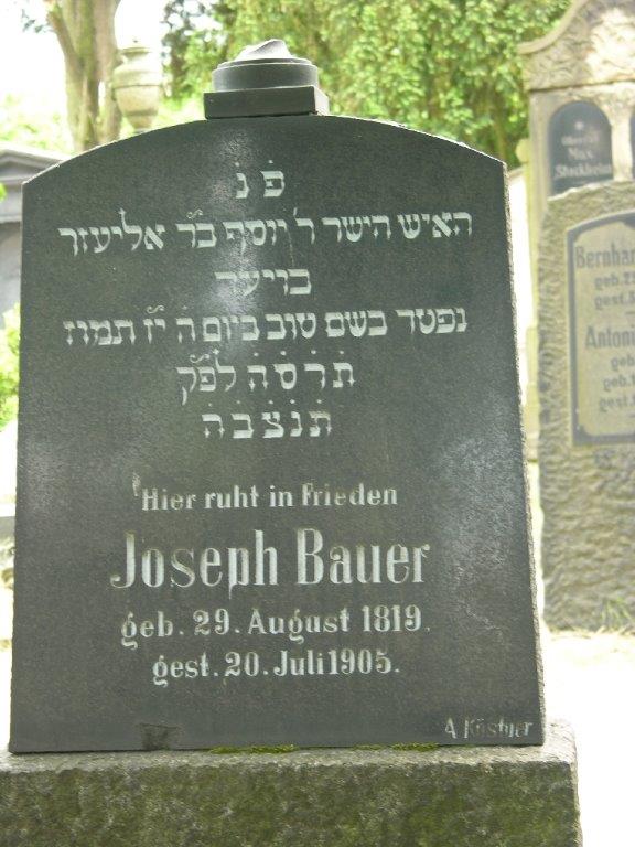 Joseph Bauer heiratete in Eppstein am 02. Januar 1852 die Metzgerin Veronika Bähr, genannt Fanny aus Eppstein. Die Familie zog später nach Frankenthal. als Veronika gestorben war zog der Wittmann nach Mannheim, wo er auch verstorben ist.
