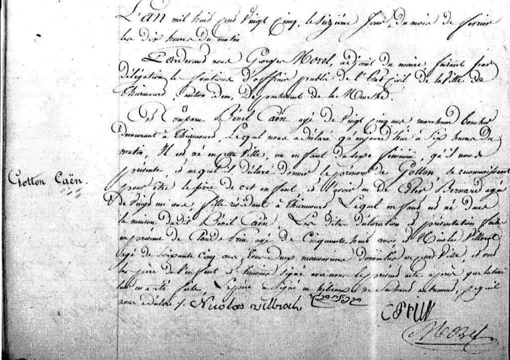 Gotton Caen (Guiget Cain) geb. in Thiancourt, Meurthe in Frankreich, Tochter der Eheleute Benel Caen und Esther Bernard, war verheiratet mit Jonas Marx, später John Marks aus Ingenheim.