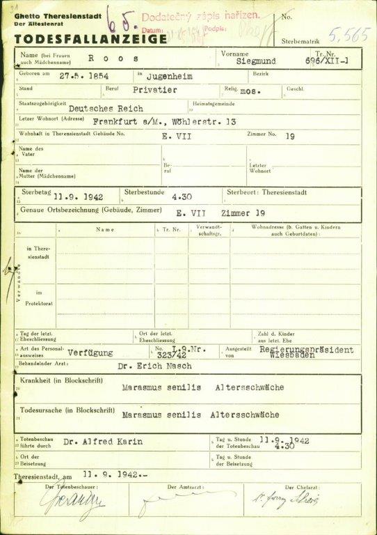 Sterbeort: Theresienstadt / Tschechien