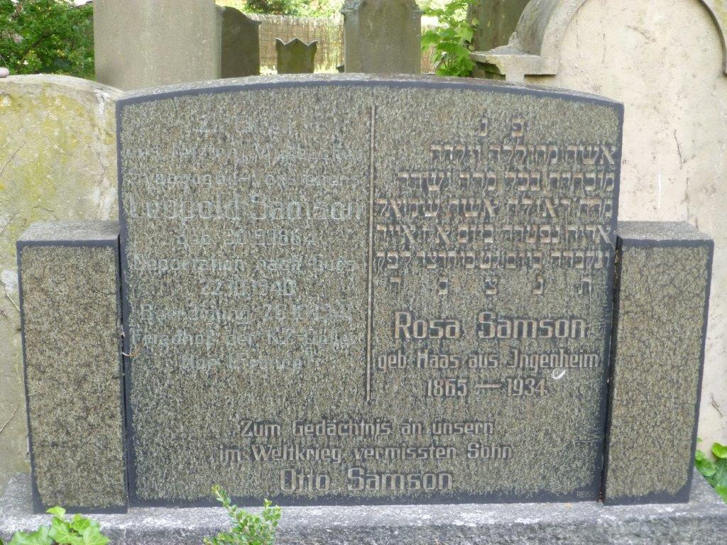 Rosalia Haas war die Tochter von Israel Haas und dessen Ehefrau Sybilla geb. Wolf. Am 12. Dezember 1894 heiratete sie den aus Mußbach stammenden Lederproduktenhändler Leopold Samson. Mit der Hochzeit übersiedelte sie nach Mußbach. Sie hatten einen Sohn Otto Samson, der im 1. Weltkrieg entweder verlustig ging (am 15. 06.1917 laut Verlustliste des Heeres) oder am 10. Januar 1920 in Folge der Verletzunges des 1. Weltkrieges verstarb (Jüdische Gefallenenliste des deutschen Heeres). Auf dem Grabstein der Eltern ist seiner als "vermisst" gedacht.