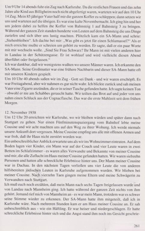 Das änderte sich schlagartig nach der Pogromnacht. Immer wieder wurde die Familie überfallen. Trotz der vielen Verbote und Behinderungen durch die Nazis gab es im Ort gute Nachbarn, die der Familie in diesen schweren Zeiten beigestanden sind und ihnen geholfen haben.