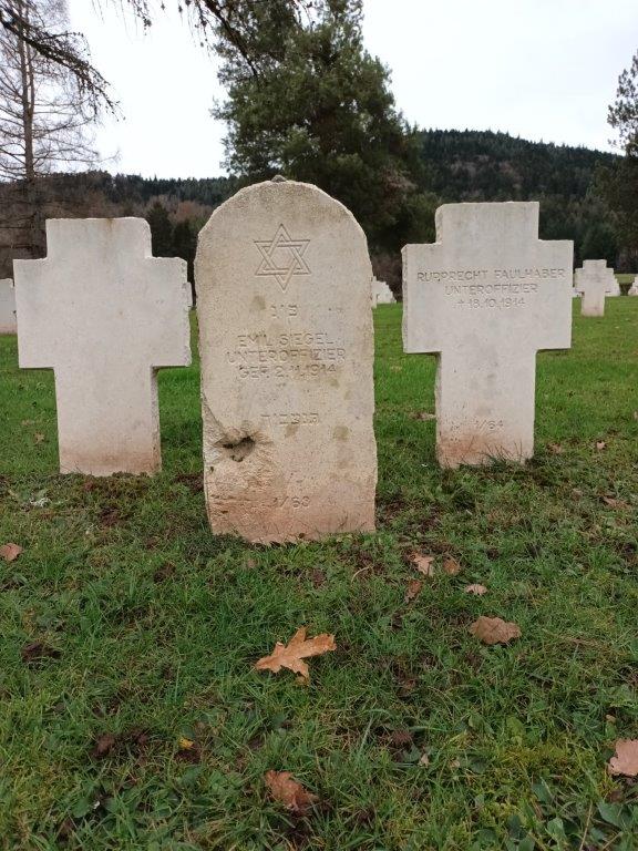 Emil Siegel, Sohn der Eheleute Moses Siegel und Justina Mayer heiratete am 24. Juli 1911 in Speyer Sofia Mayer. Sofia war die Tochter des Kaufmanns Albert Mayer, der in der Speyerer Maximilianstraße 66 ein Kaufhaus leitete. Ein Kind Ruth wurde im Juni 1912 in Speyer geboren. Emil war im ersten Weltkrieg Unteroffizier des Bayerischen Brigade Ersatz-Battaillon 4, der 1. Kompnie. Bereits drei Jahre nach der Hochzeit fiel er1914 in der Schlacht bei Senones in Frankreich.