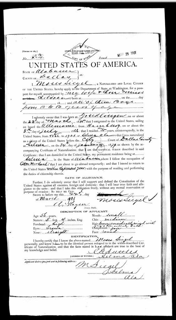 Ab 1900 wohnte die Familie in Selma Ward 1, Dallas, Alabama, wo Moses auch im Alter von 57 Jahren als angesehener Kaufmann und Bürger verstarb.
